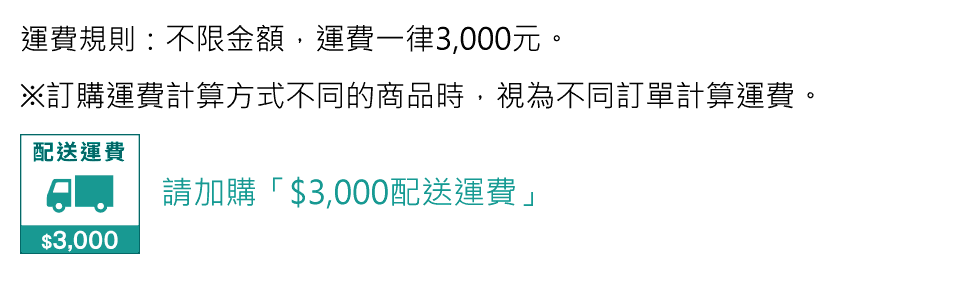 ※該區無固定配送車排程,配送日及運費請依服務人員說明為準。