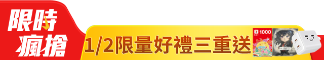 1/2限量好禮三重送(1千元商品卡+抱枕+67W快充頭),登記再抽12000P+行李箱(限量)