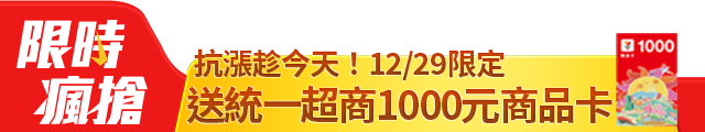12/31前下單登記抽12000P,滿額指定登送最高2712P幣(限量)