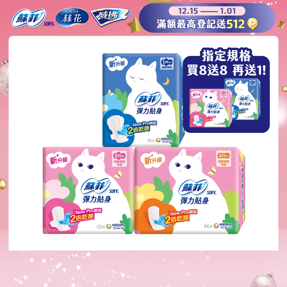 SOFY 蘇菲 彈力貼身超薄日夜用潔翼/日用基本衛生棉(日夜用潔翼16+1包/日用基本16包) 指定規格加送1包
