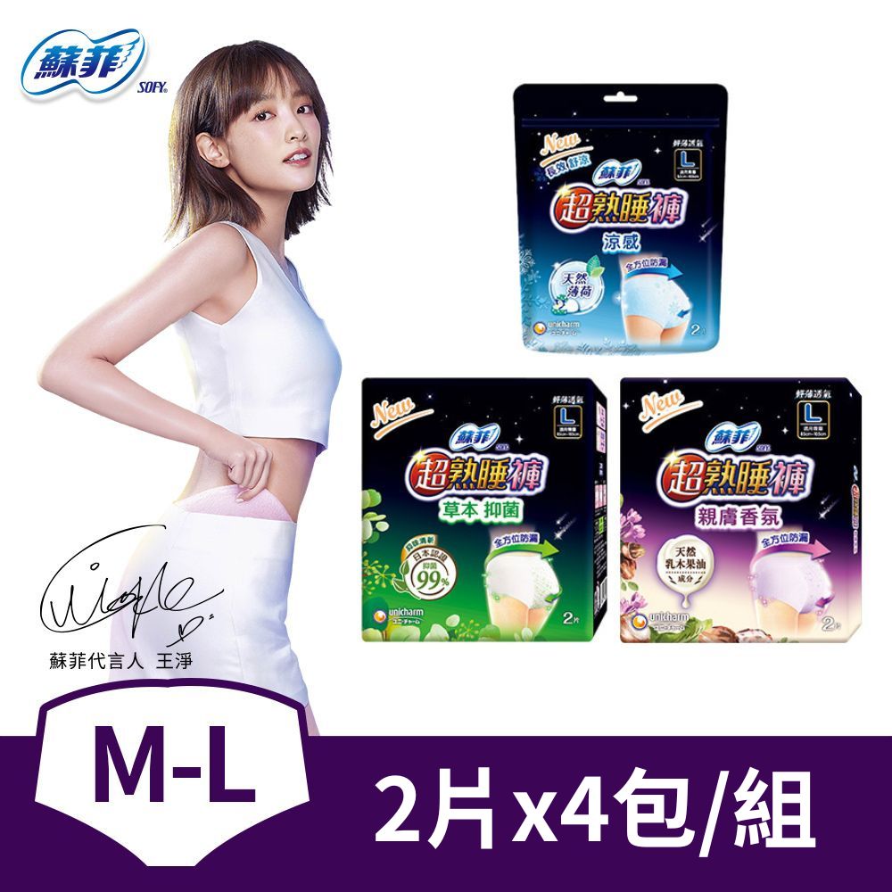 SOFY 蘇菲 蘇菲 超熟睡抑菌/乳木果/涼感內褲型衛生棉M/L/XL(2片x4包)