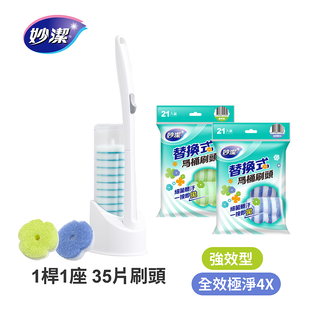 妙潔 替換式馬桶刷 強效/全效即淨 綜合組(1桿35刷頭)