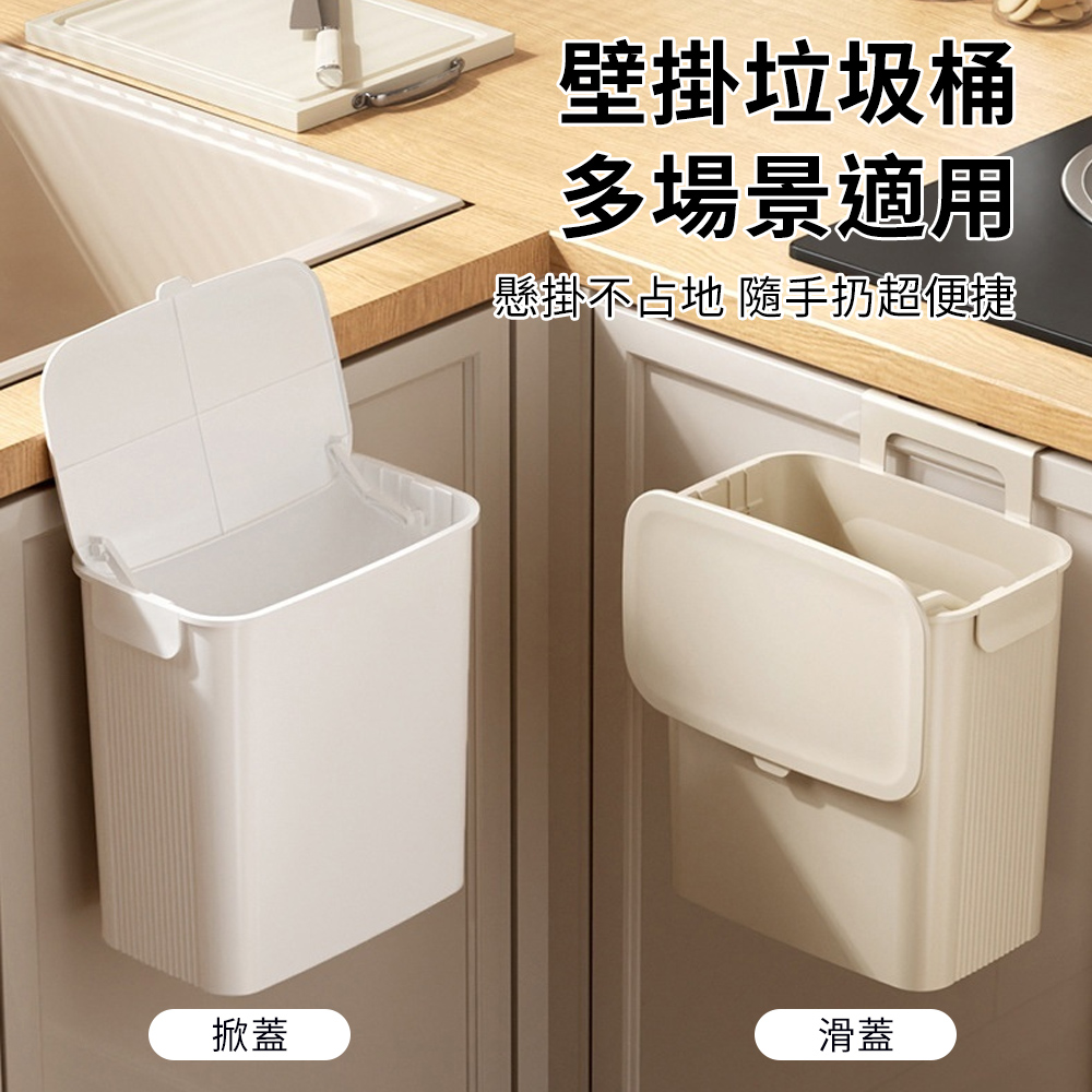 Homeco 免彎腰廚房櫥櫃 無痕壁掛滑蓋式垃圾桶 壁掛式垃圾桶 (滑蓋掀蓋垃圾桶 廚餘桶 居家清潔 大容量)