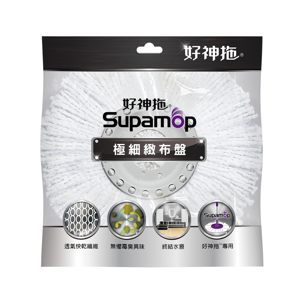 Supamop 好神拖 輕巧手壓式拖把架-袋裝+2布盤(極細緻布盤)