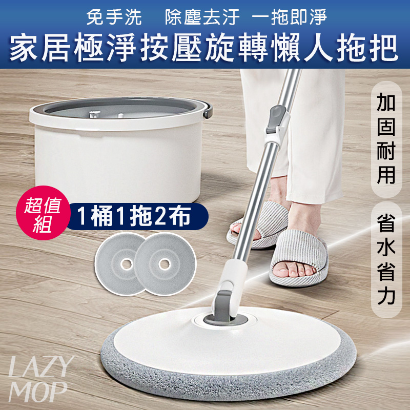家居極淨按壓旋轉懶人拖把(1桶1拖2布) 免手洗 帶桶拖把 拖地神器 多功能平板拖把 旋轉拖把