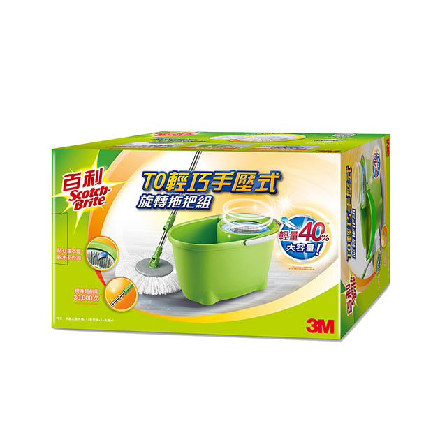 3M 百利T0輕巧手壓式旋轉拖把組