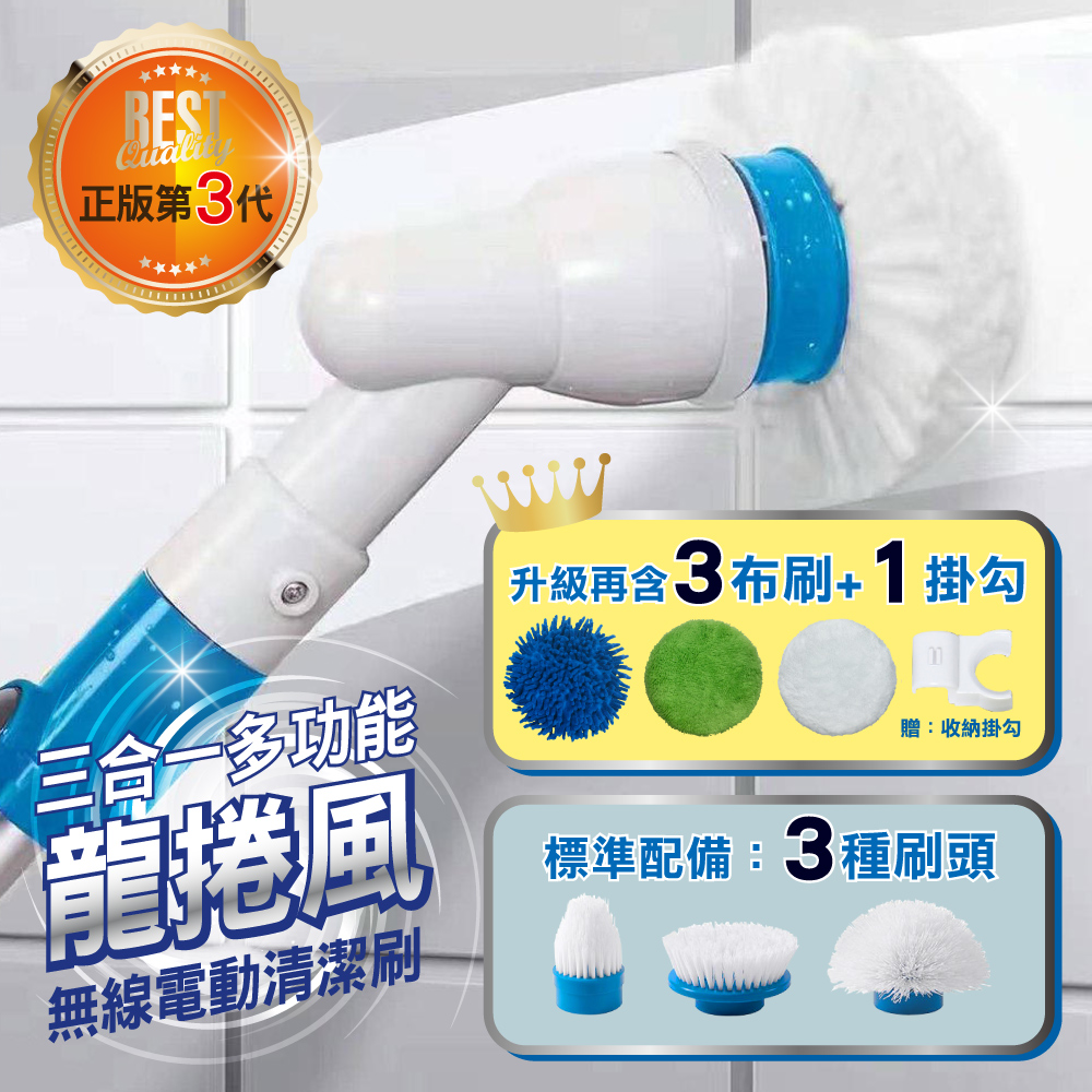 商品:【SingLife】升級三代★6刷頭★龍捲風強力無線電動清潔刷(基本3刷頭+升級5配件包組)