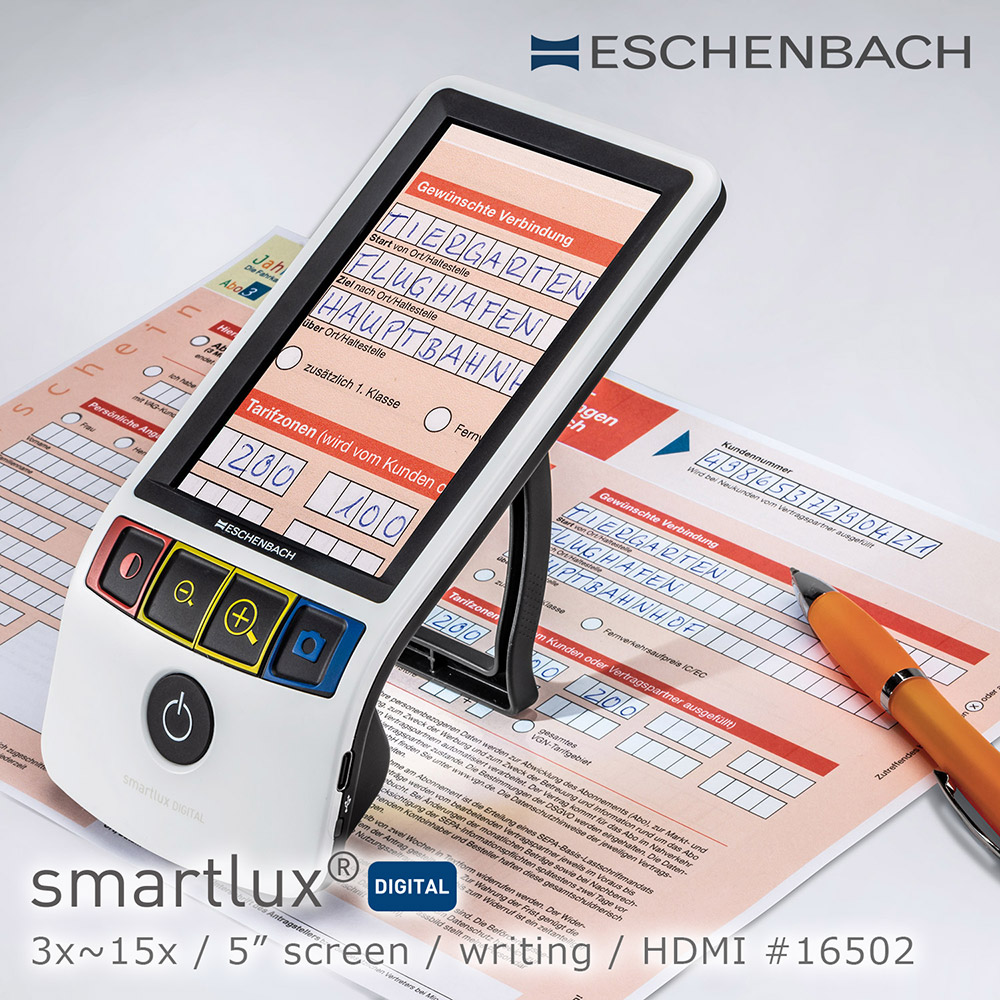 .smartlux DIGITAL (16502):5吋螢幕,放大倍率為 3倍~15倍,15種色彩模式,具有書寫立架,方便手寫文件,可連接 HDMI 裝置。