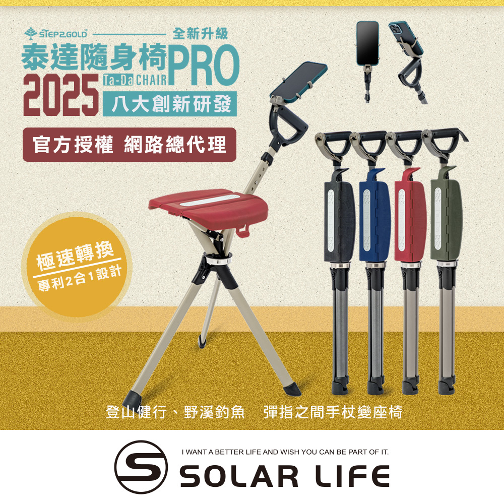 爬山健走是不少長輩熱愛的戶外活動,但隨著年紀增長,體力上不免隨之下降,在這種時候,攜帶一支泰達椅,不只是手杖,為您分擔疲勞。