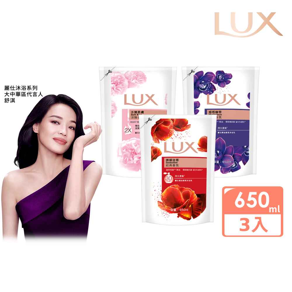 LUX麗仕 精油香氛沐浴乳補充包650ml x3入 (多款任選)