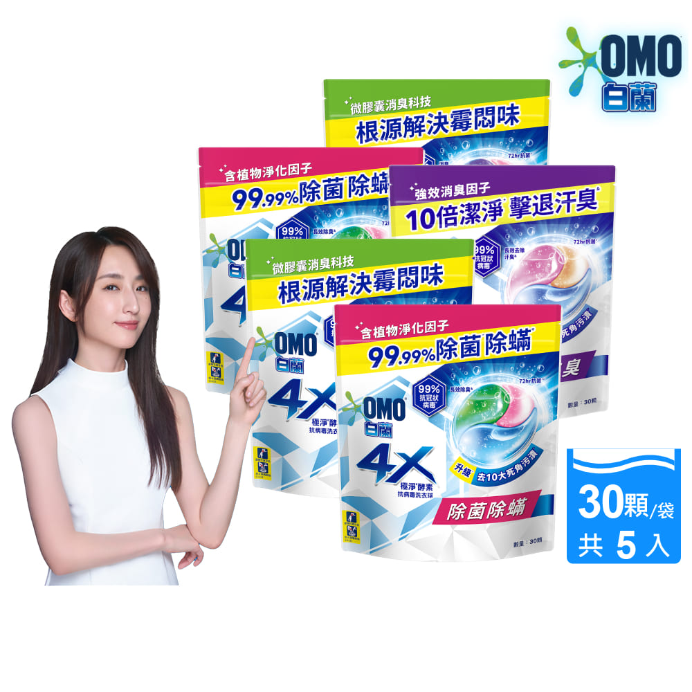 白蘭 4X極淨酵素抗病 毒洗衣球補充包150顆(30顆/袋x5)(三款任選)