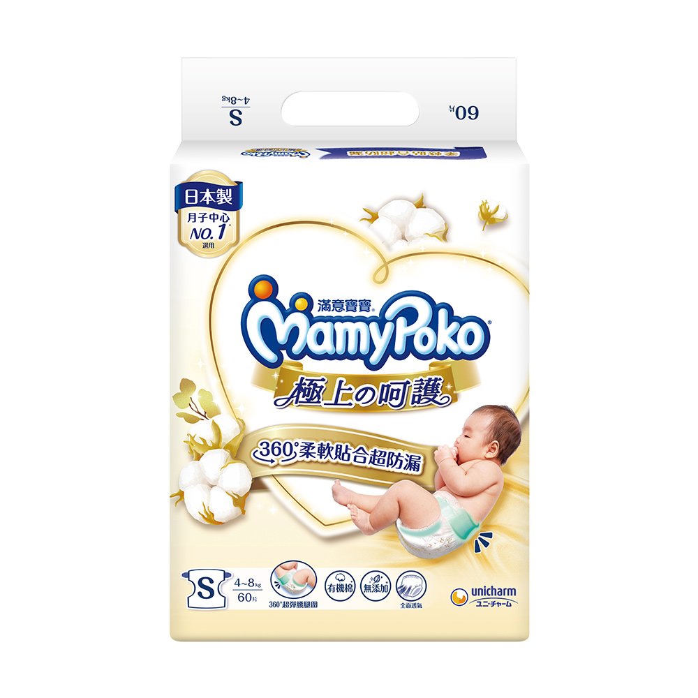 mamypoko 滿意寶寶 極上呵護紙尿褲S-60片x4包/箱(黏貼型/日本白金/尿布)