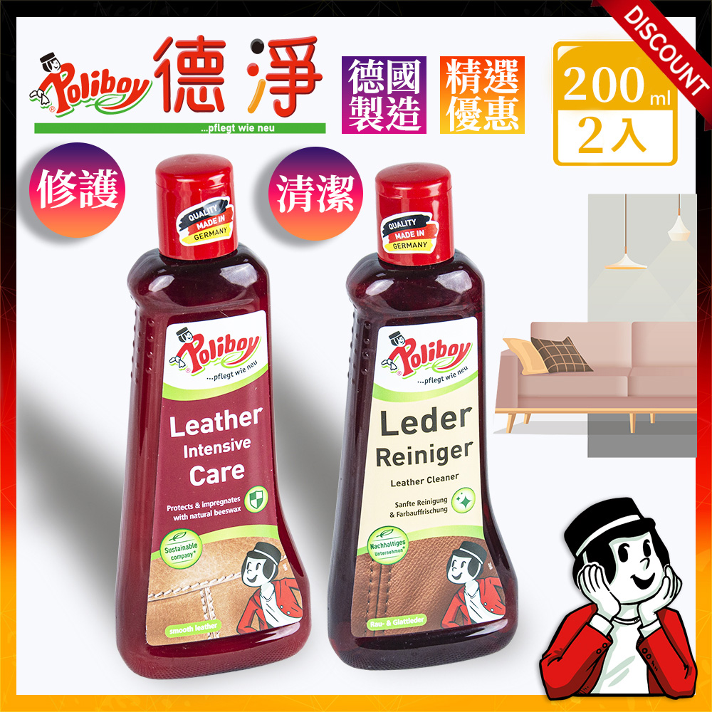 Poliboy 德淨 經濟2入組-皮革清潔保養套裝組合-皮革長效保養乳200ml*1+皮革清潔劑-200ml*1 配方溫和 不傷材質
