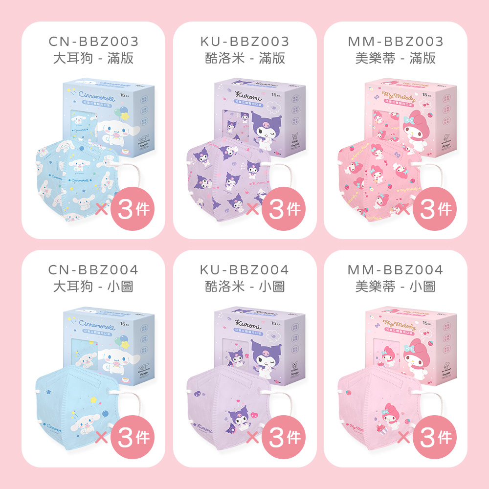 【三麗鷗兒童立體口罩(15入x3盒)】
