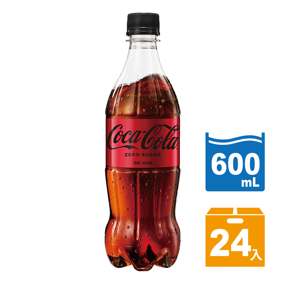 可口可樂 【Coca-Cola ZERO SUGAR】無糖零卡寶特瓶600ml (24入/箱)
