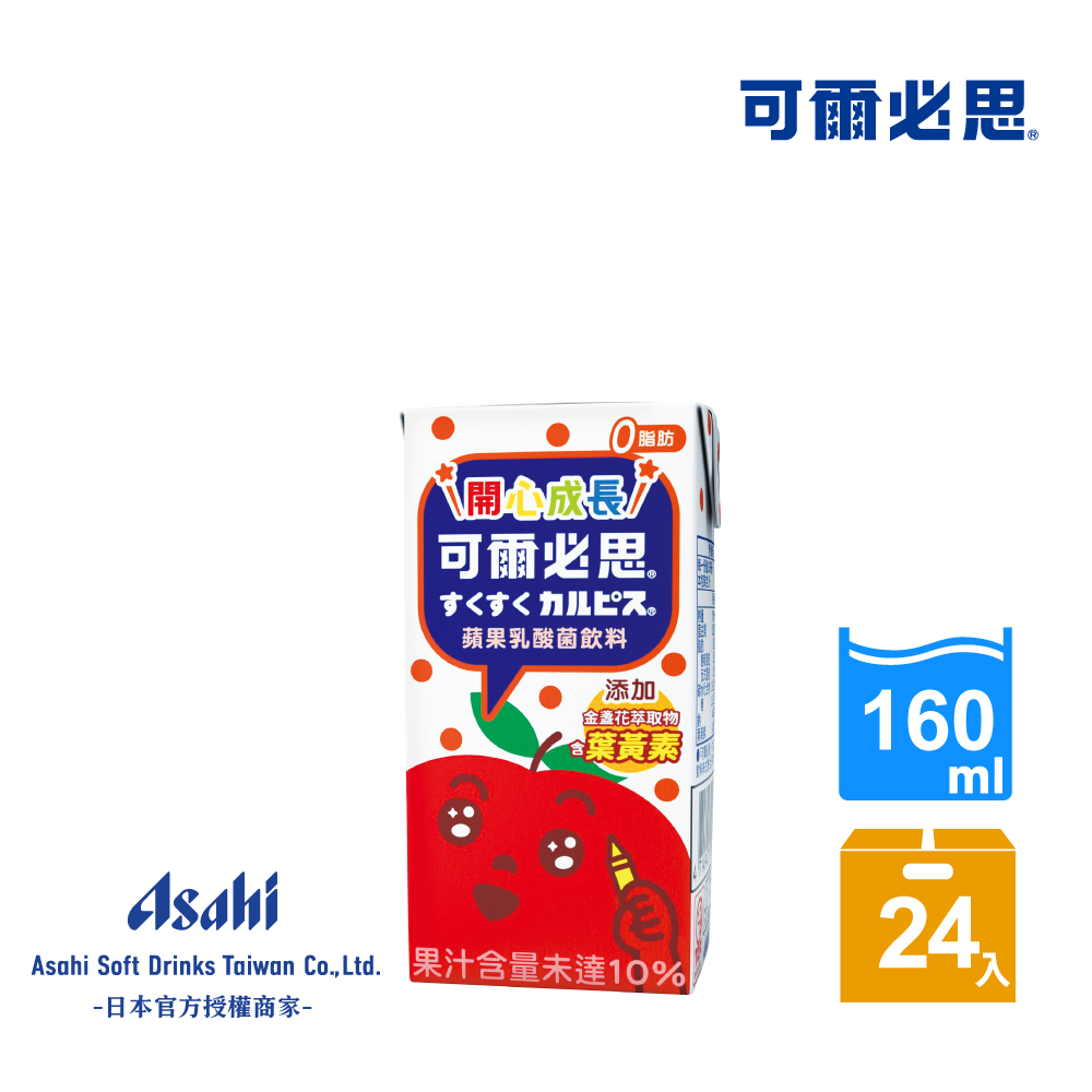 可爾必思 開心成長(蘋果)乳酸菌飲料160ml-6入x4組/箱(添加鈣成份0%脂肪)