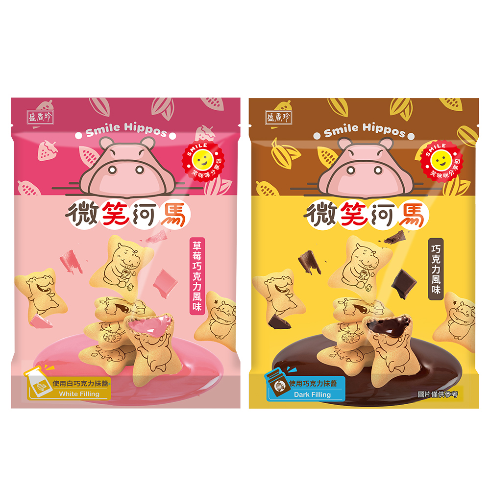 《盛香珍》微笑河馬餅200g/包 (2口味-巧克力風味/草莓巧克力風味)