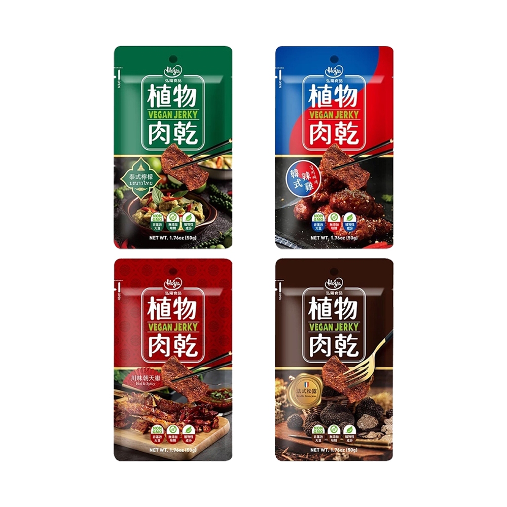 | 品名 | 【HOYA弘陽食品】(15包組)植物肉乾 素肉乾50g/包_台式鹹酥雞/韓式辣雞/泰式檸檬/法式松露/川味朝天椒 |