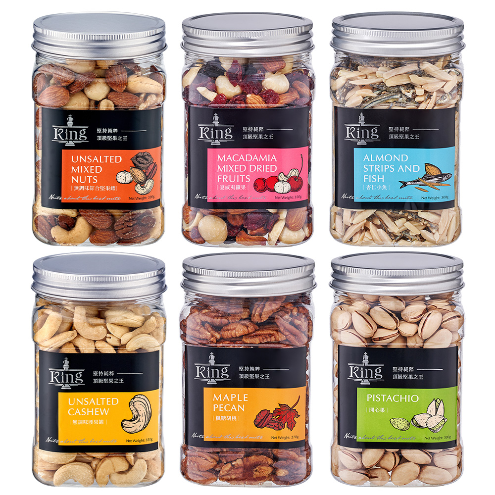 盛香珍 KING 堅果系列 x3罐 ( 無調味綜合果 無調味腰果 杏仁小魚 夏威夷纖果 楓糖胡桃罐 開心果 )