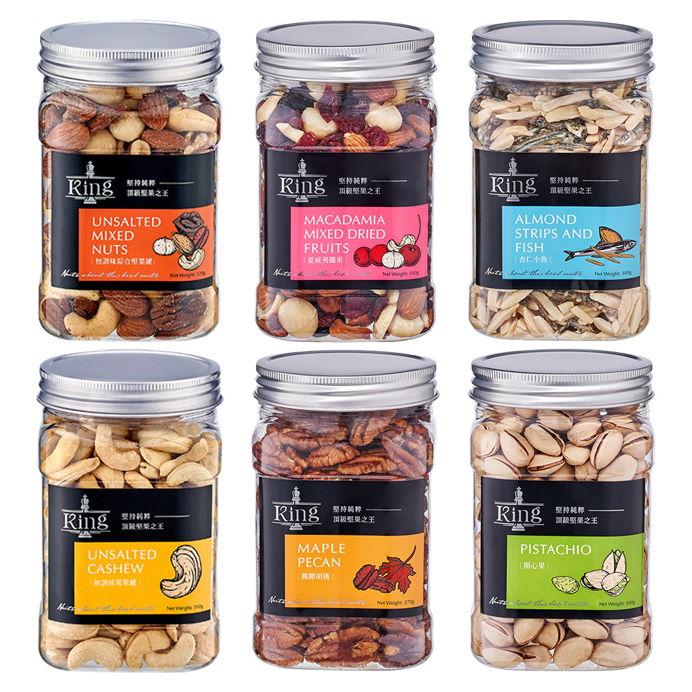 | 品名 | KING無調味堅果罐 〔無調味綜合果 無調味腰果 杏仁小魚 夏威夷纖果 楓糖胡桃 開心果〕 |