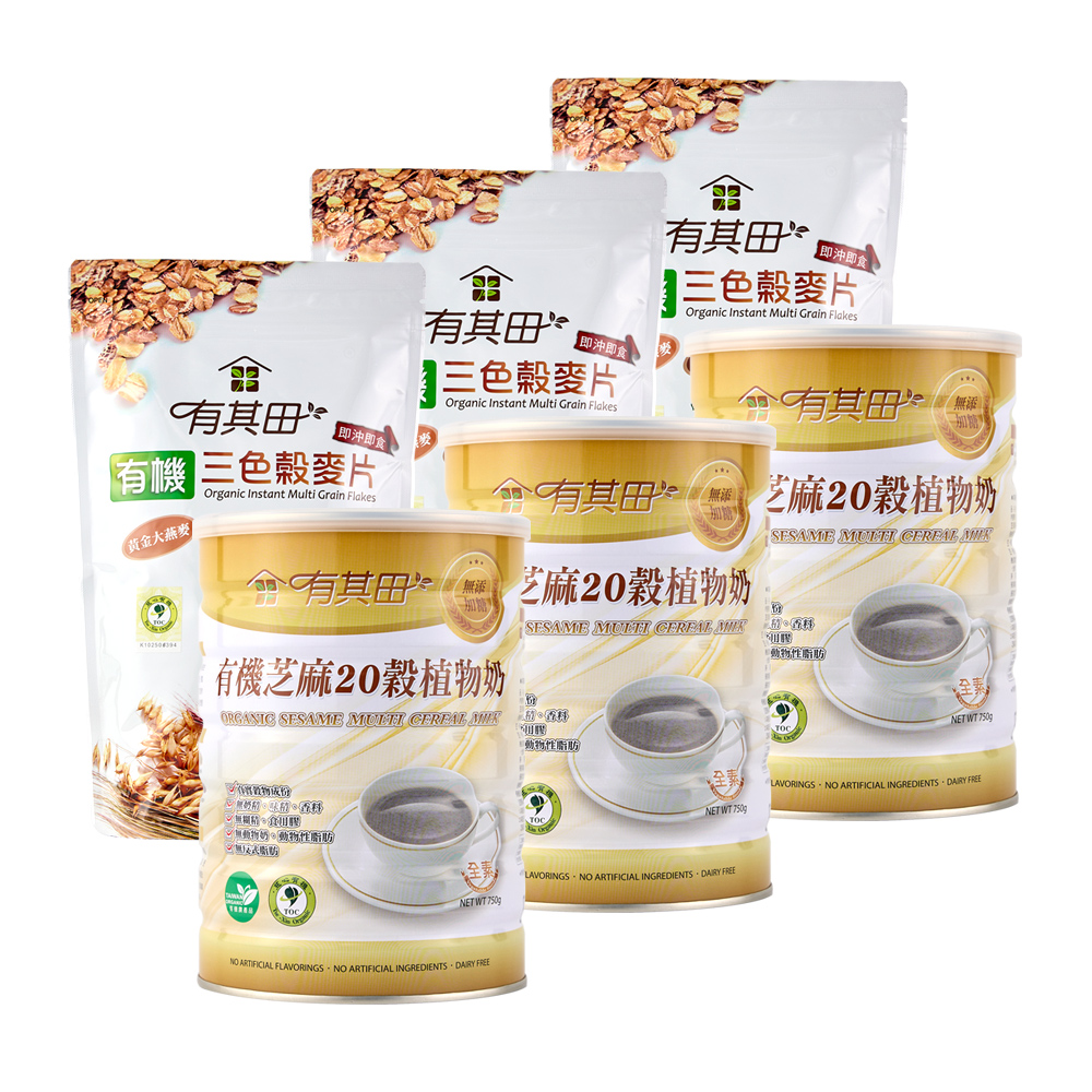 | 內容量 | ▼有機芝麻多穀奶(罐裝)(750g/罐x3罐)▼有機三色穀麥片(500g/包x3包) |