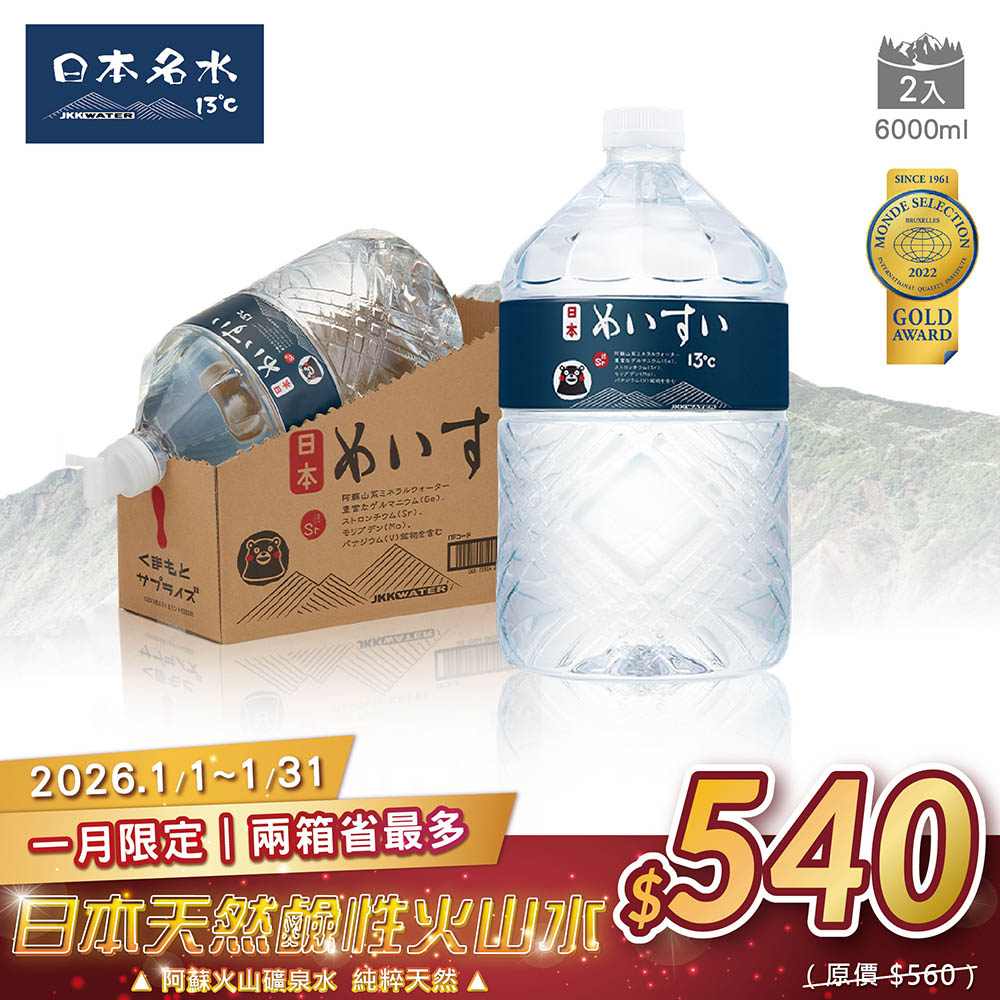 【日本名水13℃】JKKWATER(6000mlx2入/箱) 日本原裝進口【礦泉水/天然水/軟水】