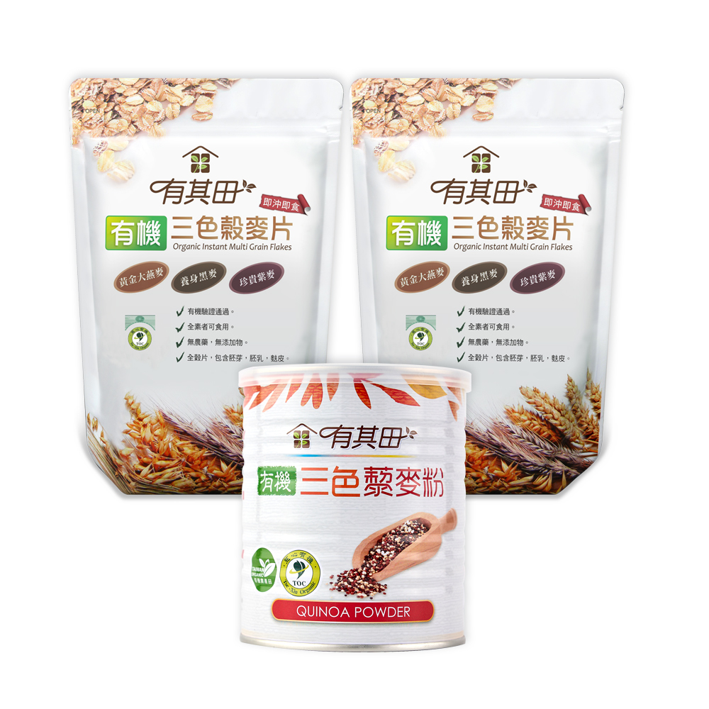 有其田 有機藜麥沖泡組(藜麥粉x1罐+三色榖麥片x2包 )
