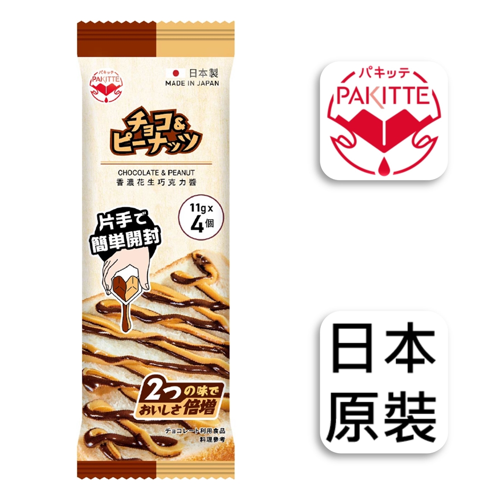 PAKITTE™日本原裝香濃花生巧克力醬 6:4的黃金比例,醇濃花生,配上好吃的巧克力 享受美味又定量,專利不沾手攜帶使用都方便 「單手一擠、雙重享受」!
