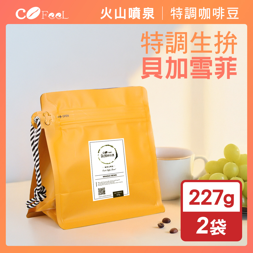 CoFeel 凱飛鮮烘豆特調生拚貝加雪菲咖啡豆一磅-淺中烘焙(227gx2袋)