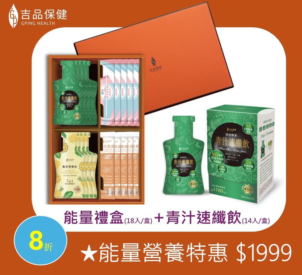 商品名稱:【吉品保健】能量禮盒(18入/盒)+青汁速纖飲(14入/盒)
