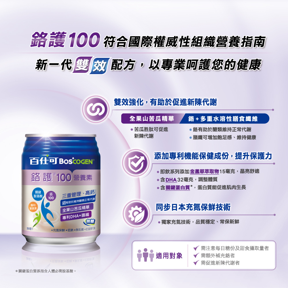| 品名 | 百仕可鉻護100無糖營養素 250ml*24入 |