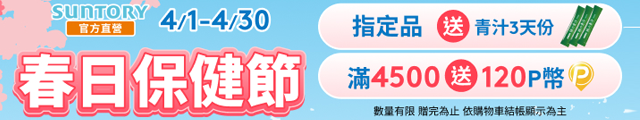 單筆滿$4500送120P幣(三得利部份商品適用)