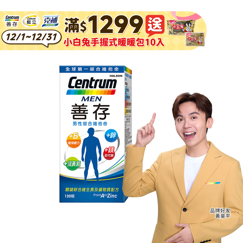 ![善存6[9成愛用者真實有感]大年輕狀態好活力 好氣色 好入睡HALEON好清晰提升謝全球 第一綜合維他命HALEONCentrumMEN善存男性綜合維他命+鋅+鎂代關鍵綜合及物質配方 22種人體必需關鍵營養素*根據IQVIA Solutions Asia Pte. Ltd. 於2024年3月之調查400位食用存綜合維他命之受試者93%針對使用綜合維他命,讓我好精神/好氣色/好體力/好入睡/思緒清晰/好至少其中一項或完全同意之評分→青春美麗增強體力幫助入睡促進新陳代謝、精神旺盛、維生素系統正常功能、維生素B2有助維持皮膚健康 PM-TW-CNT-24-00147](https://img.pchome.com.tw/cs/items/DBBC1EA9007PF9Y/i010001_1763697007.jpg)