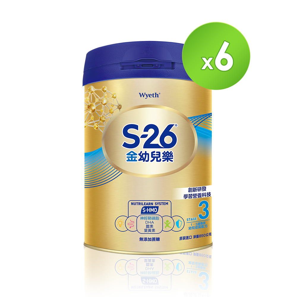 惠氏 【 S-26】金幼兒樂HMO成長配方1-3歲850gx6罐