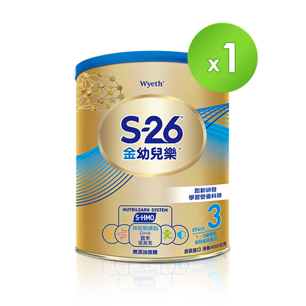 惠氏 【 S-26】金幼兒樂HMO成長配方1-3歲400gx1罐)