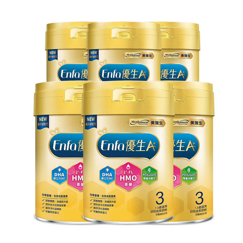 美強生 Enfa A+優生3號1-3歲適用幼兒成長奶粉 850gX6(HMO新配方)