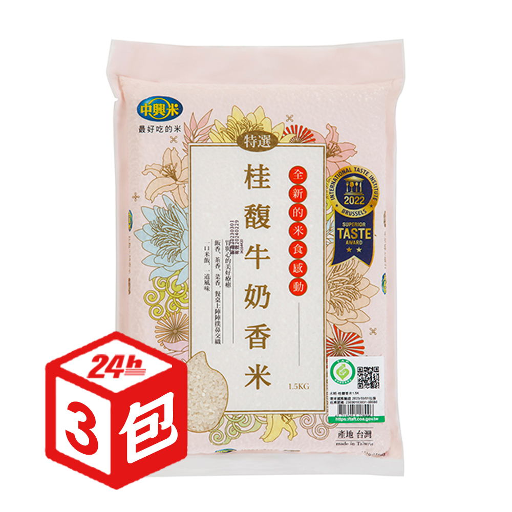 中興米 桂馥履歷牛奶香米1.5kg x3包 年菜禮盒