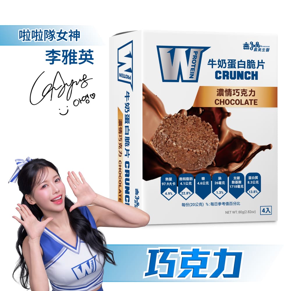 | 品名 | W PROTEIN牛奶蛋白脆片-濃情巧克力 (20g*4包/盒) |