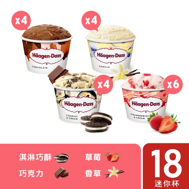 | 內容物名稱 | 【哈根達斯-冷凍宅配】新蜜糖三重奏迷你杯75ml 18入組(草莓x6香草x4巧克力x4淇淋巧酥x4) |