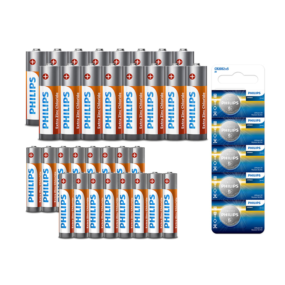 PHILIPS 飛利浦 鈕扣型電池CR2032(5入)+碳鋅34號各4入