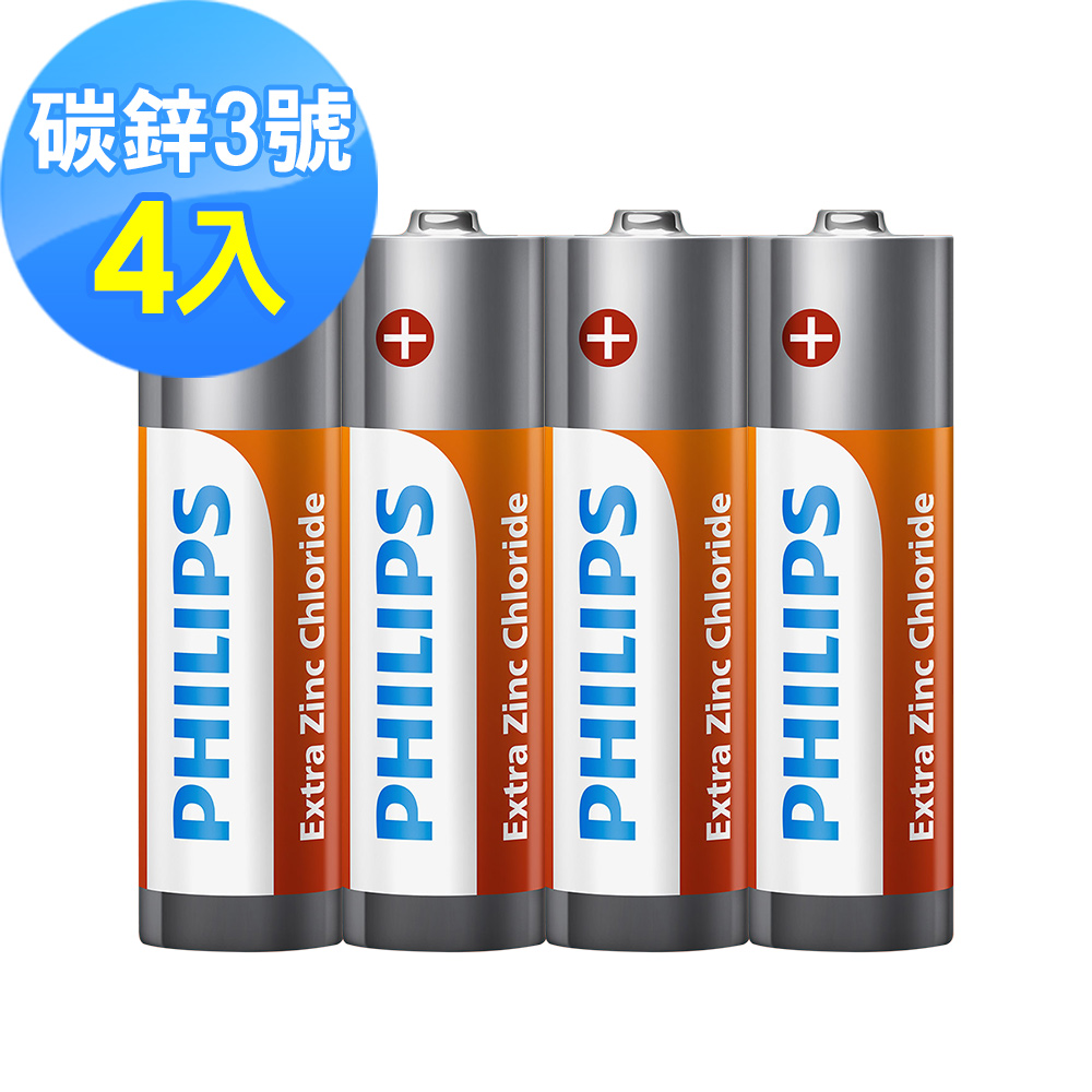 PHILIPS 飛利浦 3號碳鋅電池(4顆)