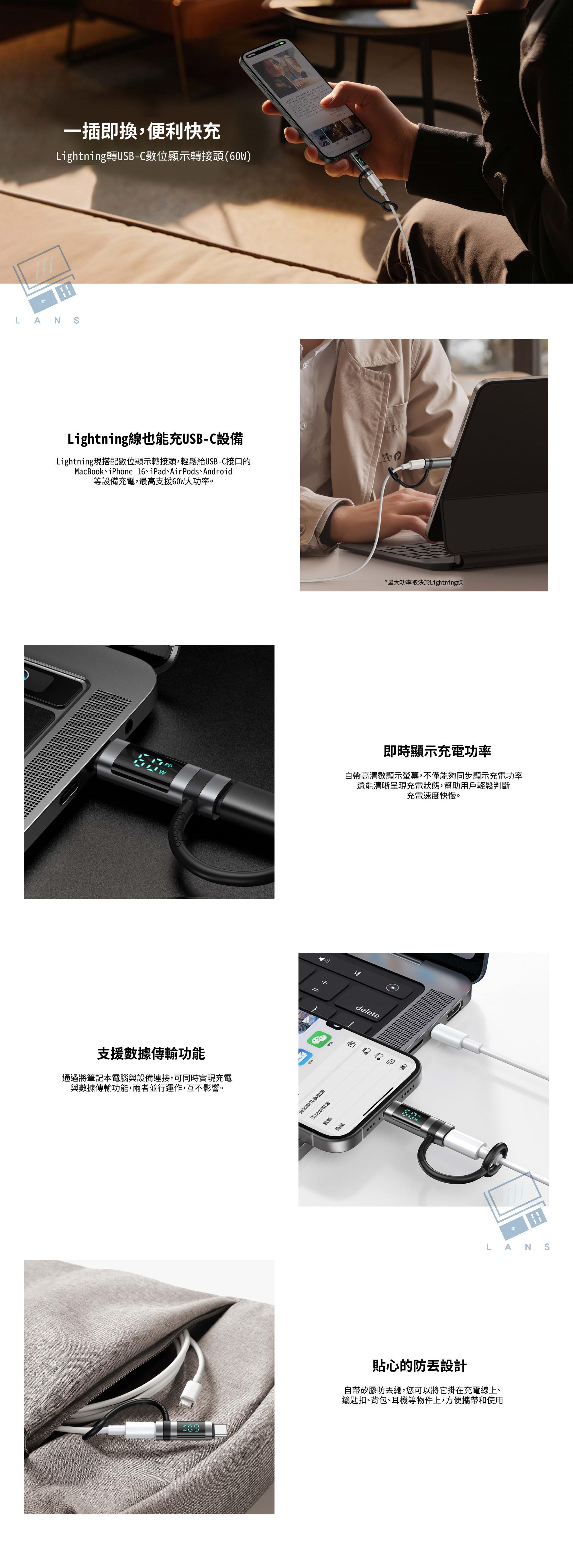 Lightning to TypeC 60W PD轉接頭