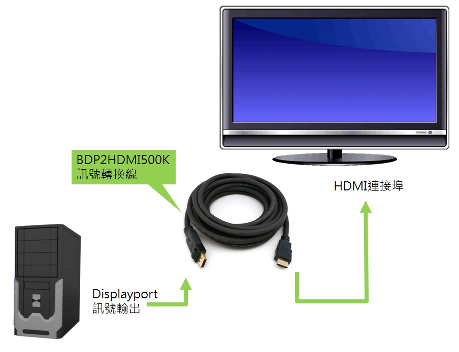 - 可讓具DP介面電腦連接到HDMI顯示器