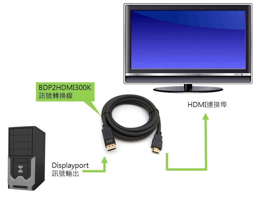 - 可讓具DP介面電腦連接到HDMI顯示器