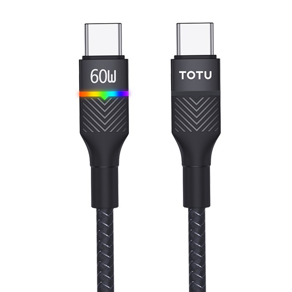 TOTU 雙Type-C/PD充電線傳輸線閃充線快充線 LED 60W快充 征程 1.5M 拓途 黑色