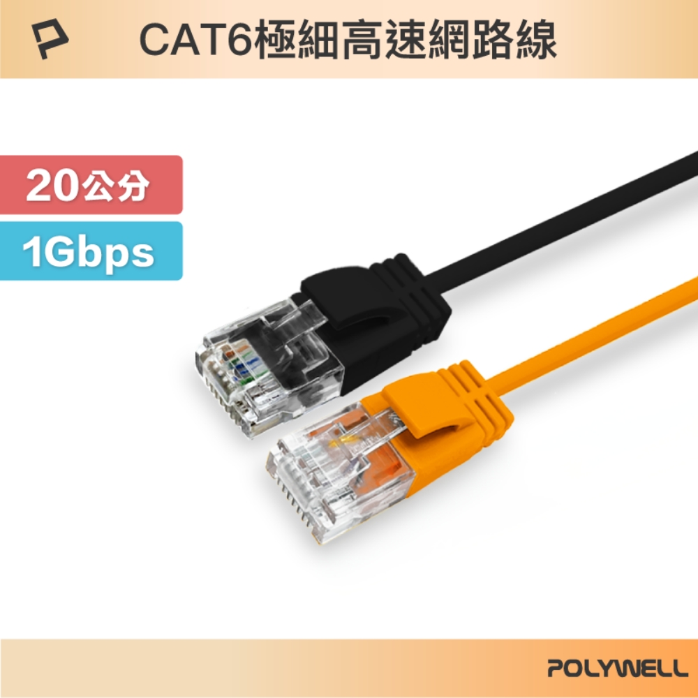 POLYWELL 寶利威爾 CAT6 極細高速網路線 /20公分 /黑色/橘色