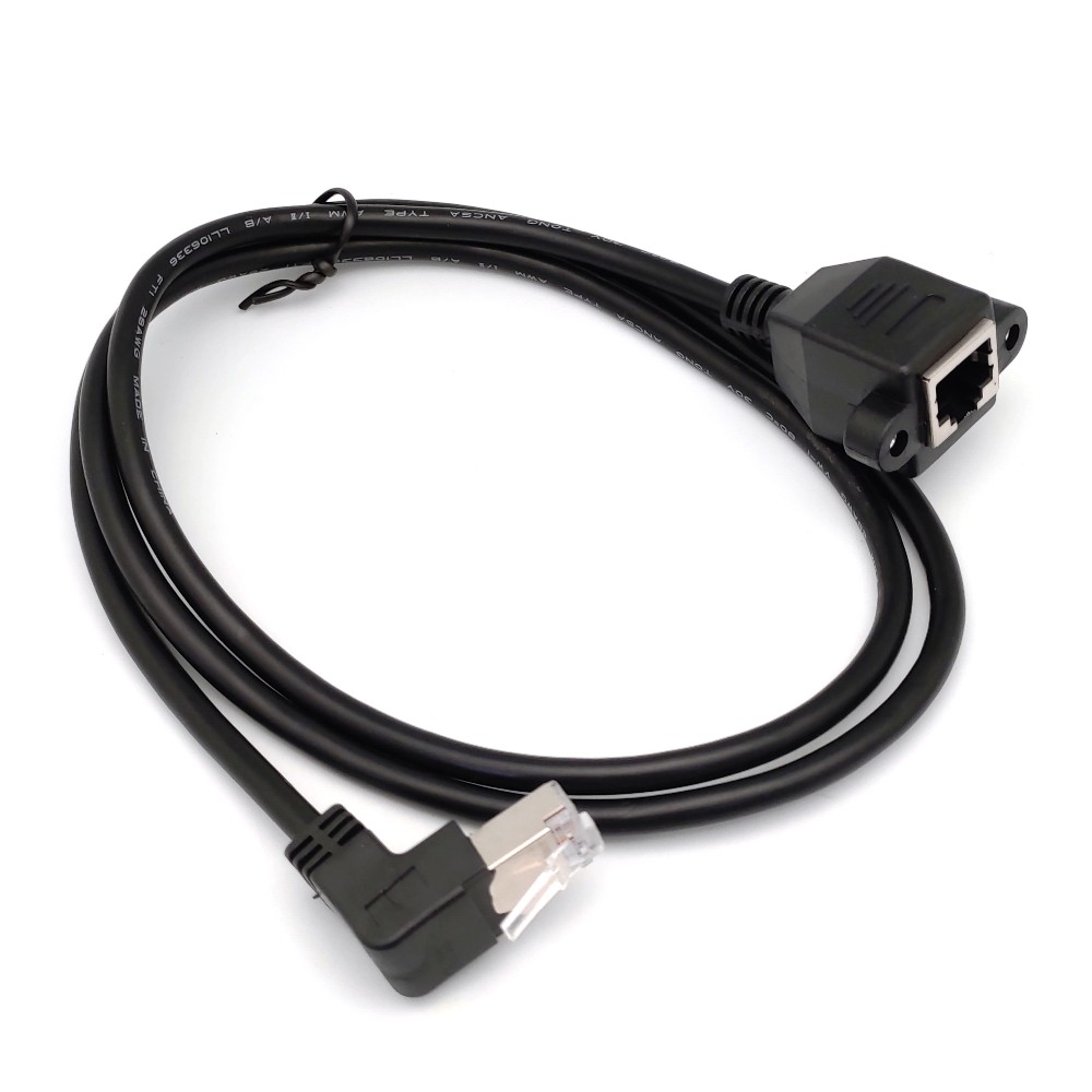 BENEVO可鎖下彎型 1米 RJ45接頭公對母延長線 (BRJ450100MDF可鎖)