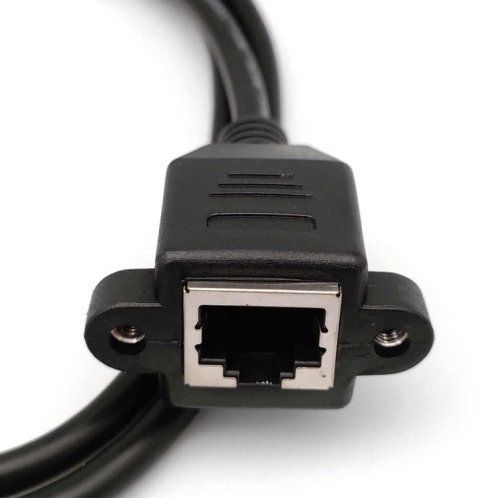 功能特點◆ 用來延伸RJ45插頭,公頭為彎型設計(請參考照片)◆ 母頭具有螺絲孔,內部有M3規格螺母,螺孔中心間距約27.5mm,可固定於機構面板◆ 使用純銅線芯(8條28線芯)◆ 可搭配RJ45對接頭使用◆ 購買前請再次確認接頭樣式的適用性◆ 可應用於工業電腦機箱與商用電腦商品主要尺寸
