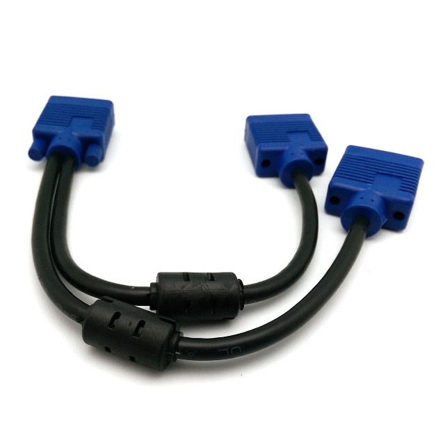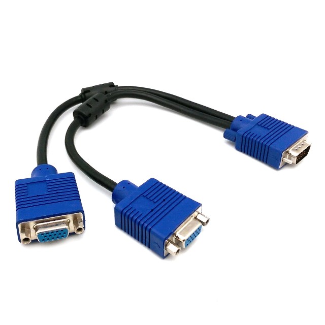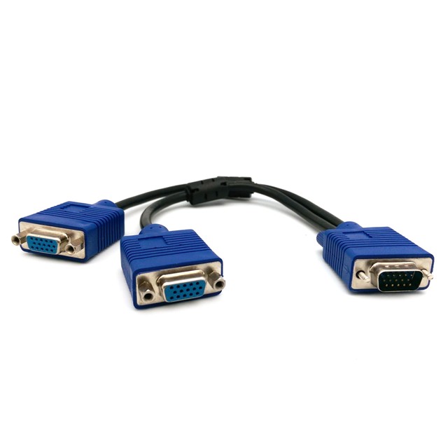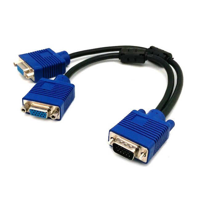 - BENEVO簡易型30cm VGA一對二視訊分配線功能特點◆ 可以將一組VGA輸出連接到兩組螢幕◆ 連接線接電腦端為VGA公頭可鎖,2個接螢幕端為VGA母頭具螺母,可以將螢幕線插頭接於此◆ 本款為簡易型,沒有外接電源,所以亮度會偏暗,請自行調整螢幕亮度◆ 僅適用於短距離之螢幕或投影機連接使用,距離建議小於5公尺◆ 請注意兩組輸出所連接的線材之阻抗需相近◆ 支援解析度最高達1920x1080,畫質會略耗損,請自行選擇適合您環境的解析◆ 如需更佳畫質與穩定應用,請使用可外接變壓器之機型(Ex: BVS142, BVS122)◆ 線長含接頭約30CM,具雙磁環抗干擾◆ 本款出貨外型與顏色可能與照片有差異,但功能特性相同,出貨不挑色