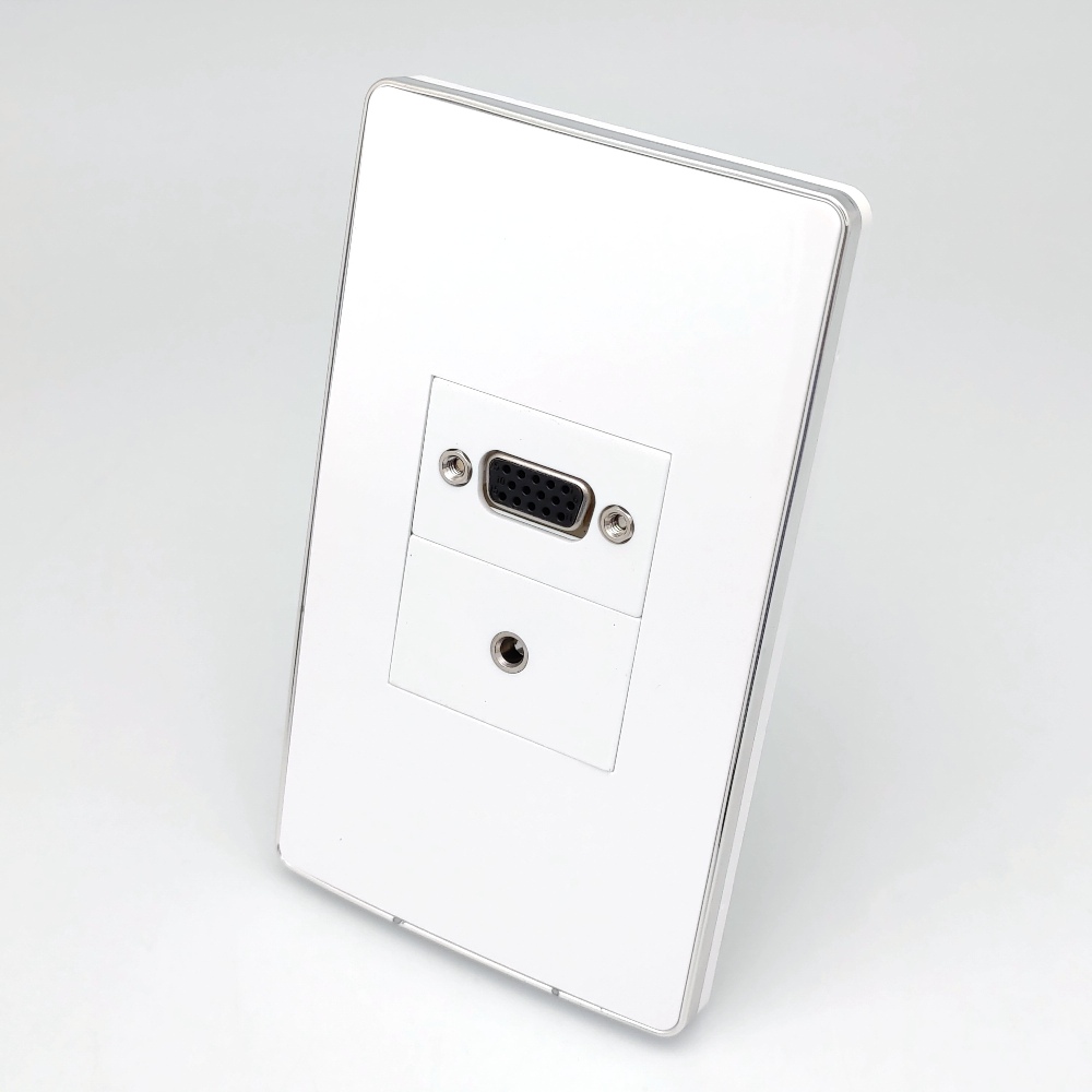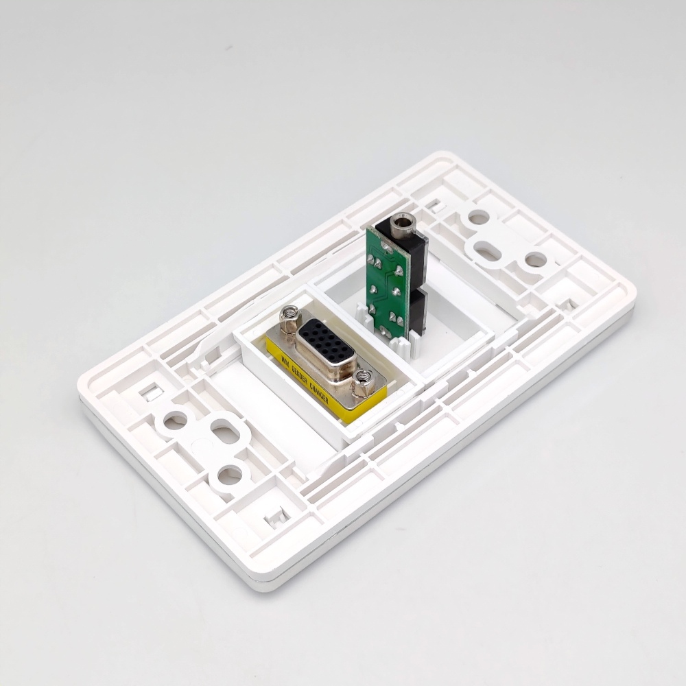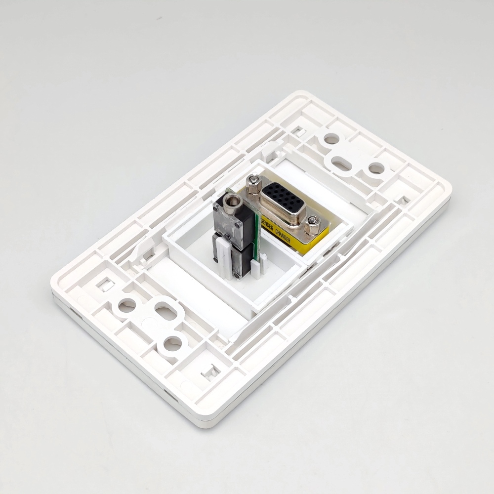 功能特點◆ 可用於壁插或是桌面設置資訊插座環境◆ 本款提供1個VGA與1個3.5mm立體聲插座◆ 後側為母頭設計,可直接連接連接線◆ 免焊接與組合式設計◆ 包裝具備基本安裝用螺絲◆ 面板後側請留足夠深度以便設置連接線◆ 外框尺寸:寬約70mm,高約120mm◆ 安裝螺絲孔距84mm,可搭配120/118型配線盒